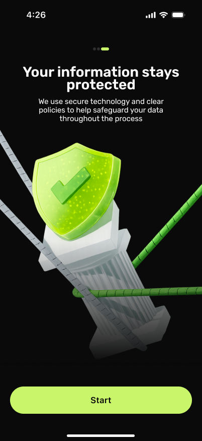 Large tap targets, dark theme, and flows optimized for small screens—so you can move at your pace.